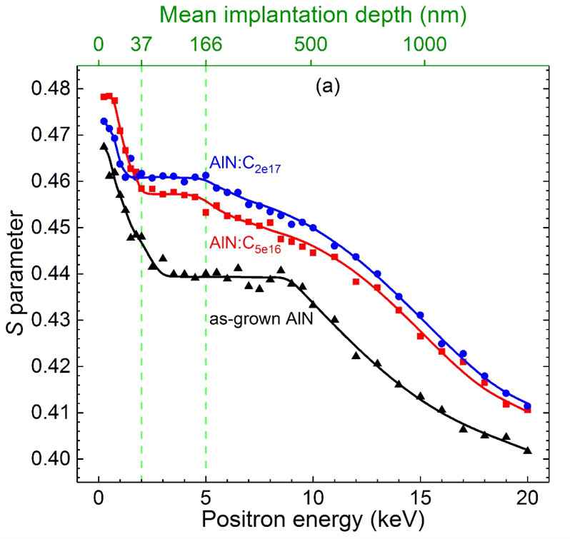 10. Effect of defects on magnetic properties of O+-implanted AlN films by positron annihilation spectroscopy